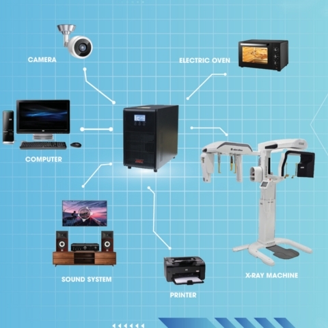 Công suất tải, dung lượng ắc quy, chế độ điện lưới, chế độ ắc quy, chế độ bypass, chỉ báo lỗi |