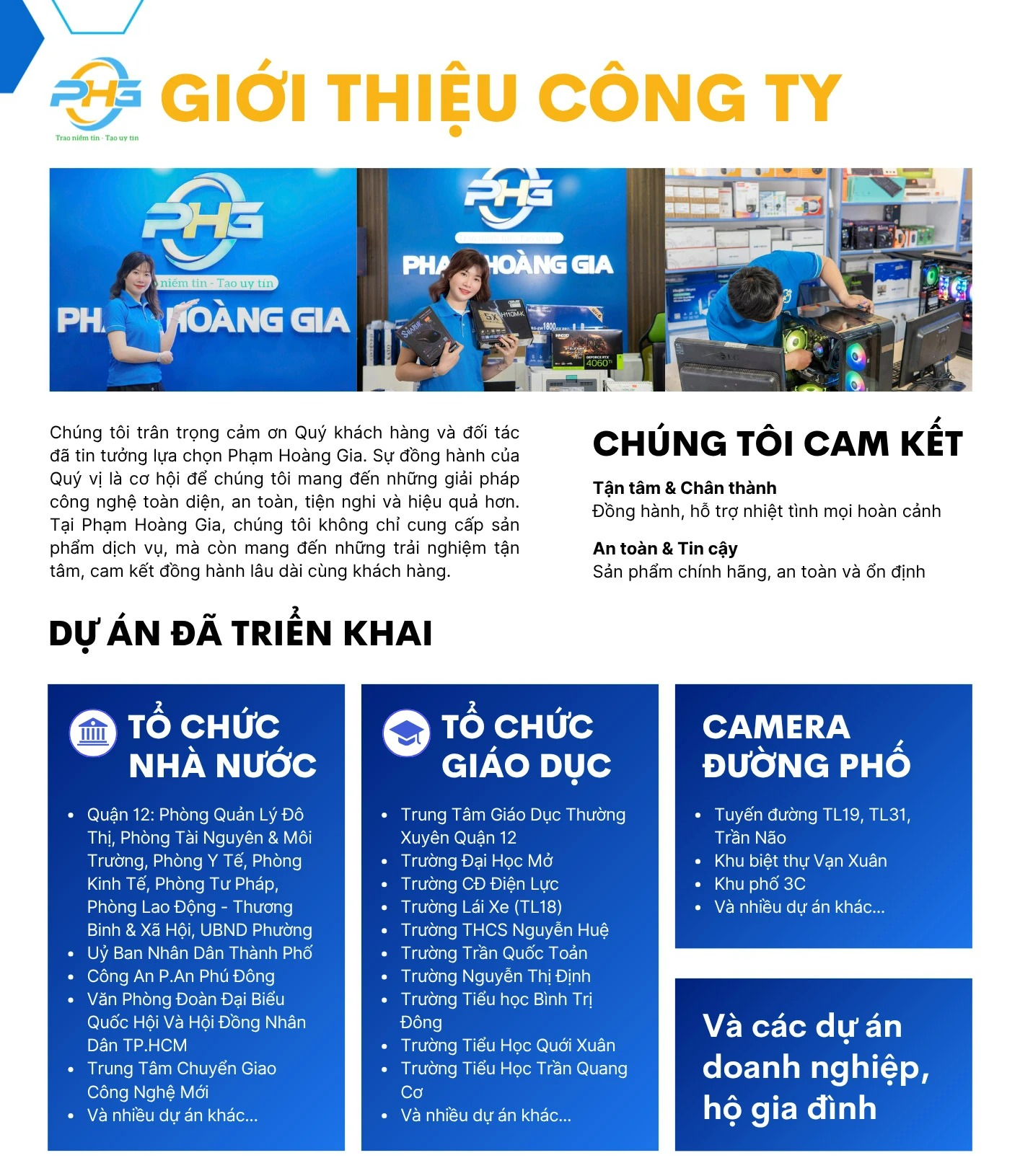 Trong suốt quá trình hoạt động, Phạm Hoàng Gia đã không ngừng khẳng định năng lực và uy tín của mình thông qua hàng trăm dự án lớn nhỏ, từ gia đình - doanh nghiệp - đến cơ quan nhà nước và tổ chức giáo dục. Chúng tôi vinh dự trở thành đối tác tin cậy trong việc tư vấn, cung cấp giải pháp và triển khai dự án cho nhiều đơn vị trên địa bàn TP.HCM và các tỉnh lân cận.