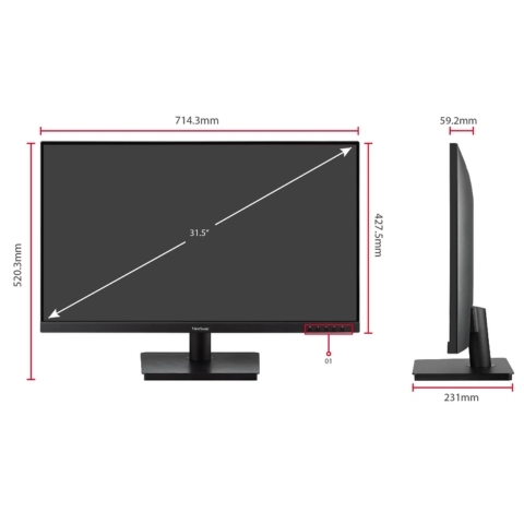 - 714 x 520 x 231 mm (Gồm chân đế)