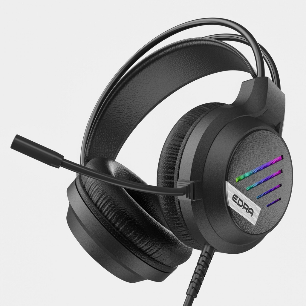 Tai nghe gaming EDRA EH406 có dây, thiết kế chụp tai, driver 50mm cho âm thanh lớn, kết nối USB, có micro tích hợp dùng cho game và học online.